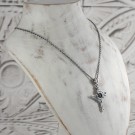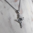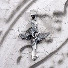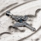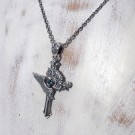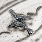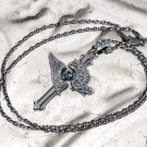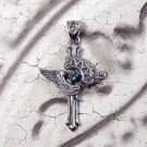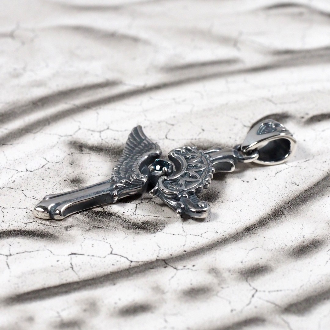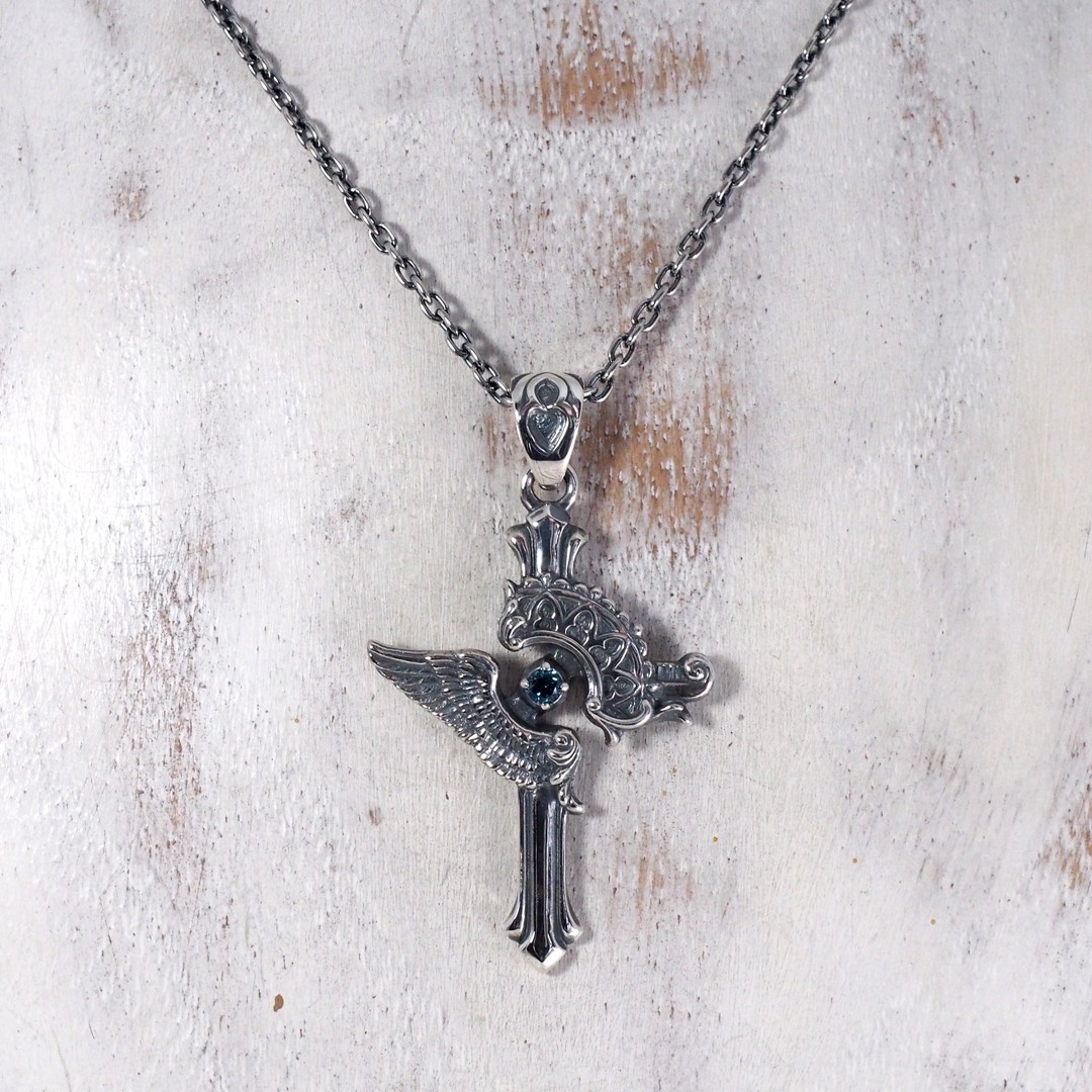 その響きをモチーフに、クロスを中心に翼が広がり、聖堂の装飾が重なるようにデザインされたペンダントです。中央には象徴色の青い石を浮かんでいるように配置し、祈りが胸元へ落ちてくる一瞬のような神秘的な雰囲気を演出。静かで力強い存在感を持つ、象徴的な一点です。