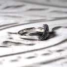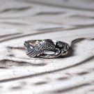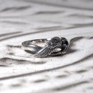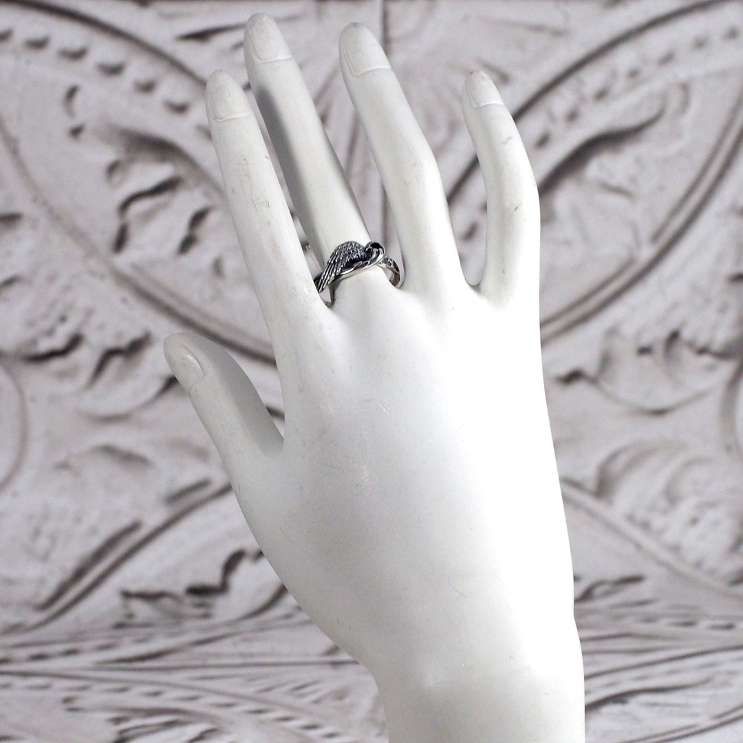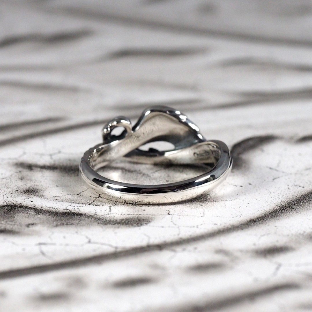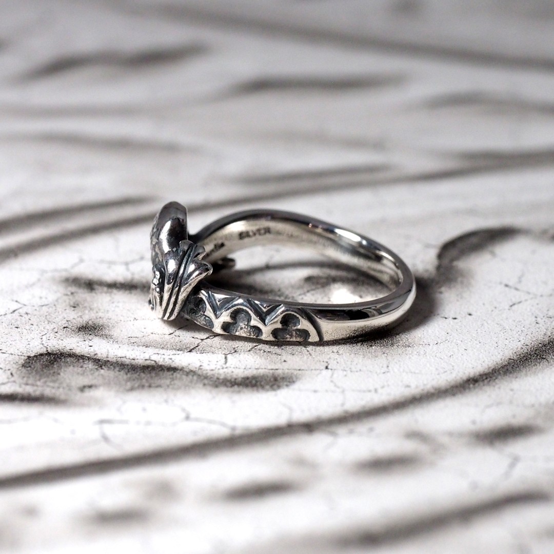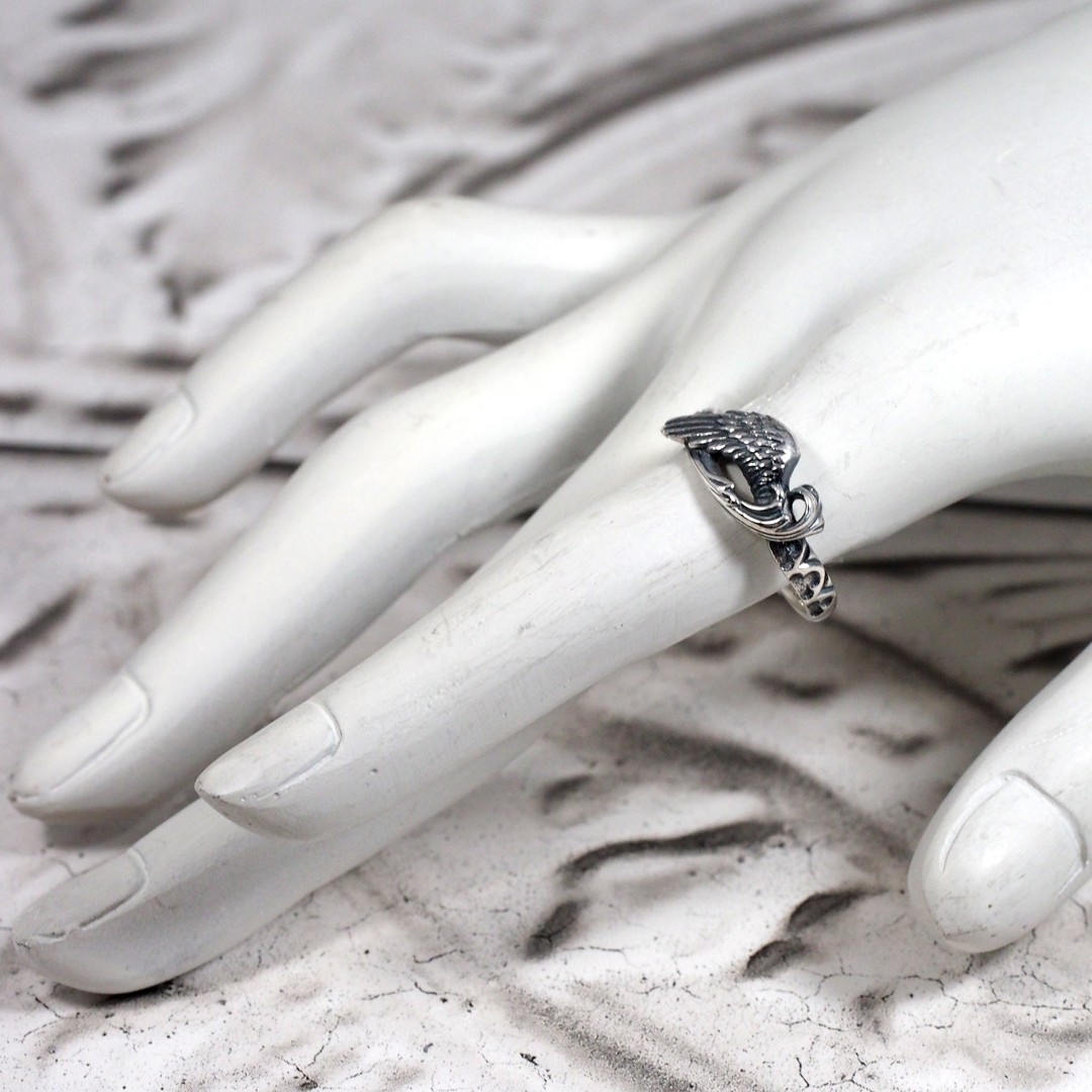 キューピッドをイメージした小さな羽のリング。羽と絡むように、唐草と聖堂の薔薇窓の要素も入れており、いろいろな角度から楽しめる曲線美のリングです。