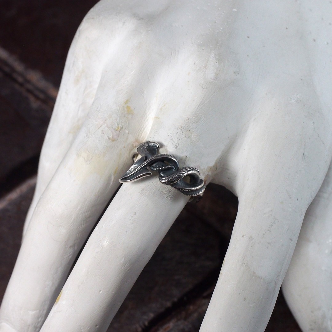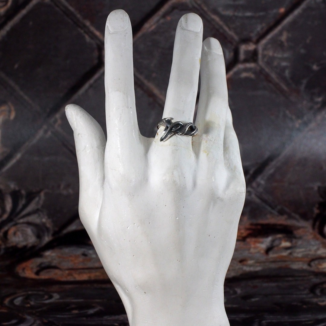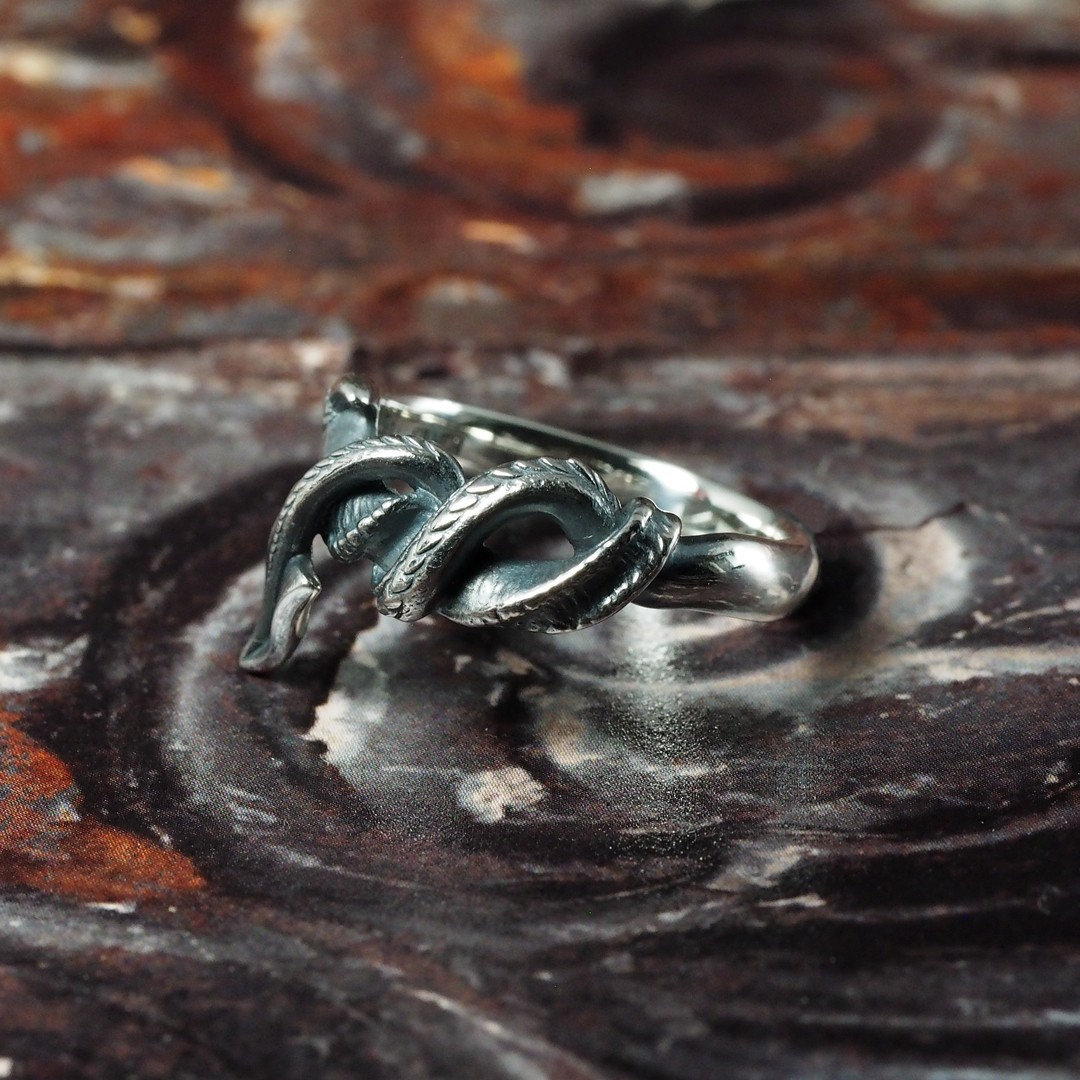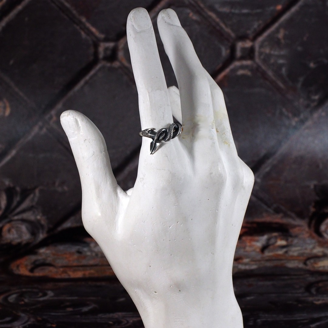 悪魔の尻尾をモチーフにしたユニークなデザインのリング。ねじれた角も絡まり、優美なシルエットになっています。悪魔が尻尾を隠すように、自分の中に秘めている悪魔的な部分を、ここでチラリと出してみてはどうでしょう。